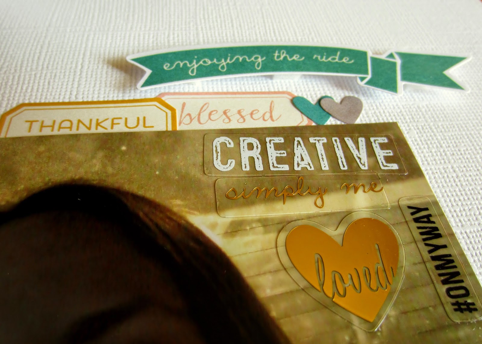 So loved the I AM... collection from simple stories, I knew I had to have all the bits and pieces! I knew I wanted to use white paper and put a bunch of the cute products all over it! So here's one page all about me: